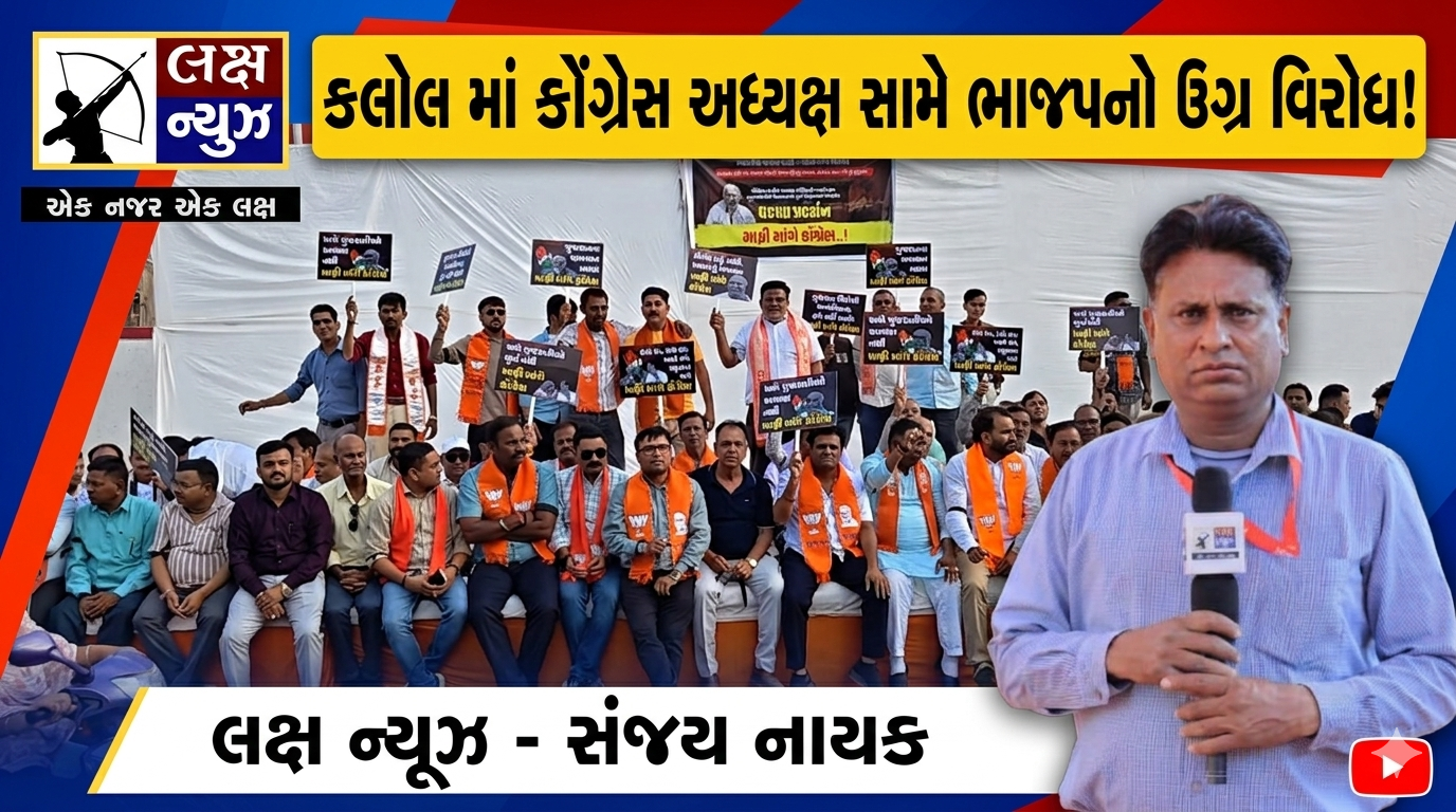 કલોલ ખાતે કોંગ્રેસના રાષ્ટ્રીય અધ્યક્ષ વિરુદ્ધ ભાજપનું વિરોધ પ્રદર્શન
